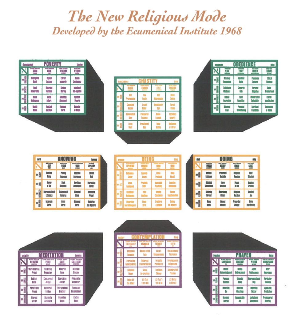 The New Religious Mode is an early framework in which The Ecumenical Institute (EI) explored, mapped and celebrated the interior lives of people.