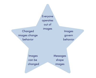 As Imaginal Education was being developed, Kenneth Boulding’s Introduction to The Image (1956) (condensed version here) provided five principles that became the foundation for the curriculum reflected in the star to the left. Boulding says that behavior is based on the way people see themselves in the world: through self-perception, self-story, and self-image.